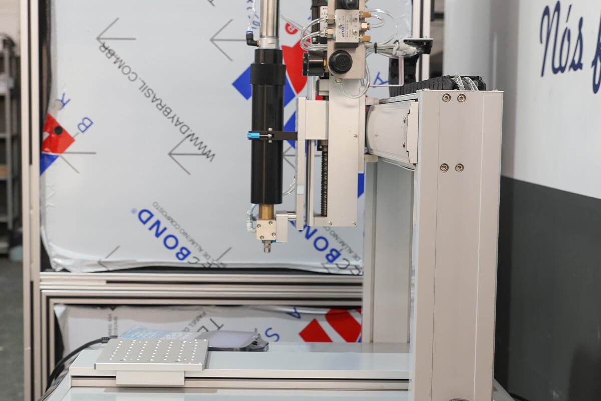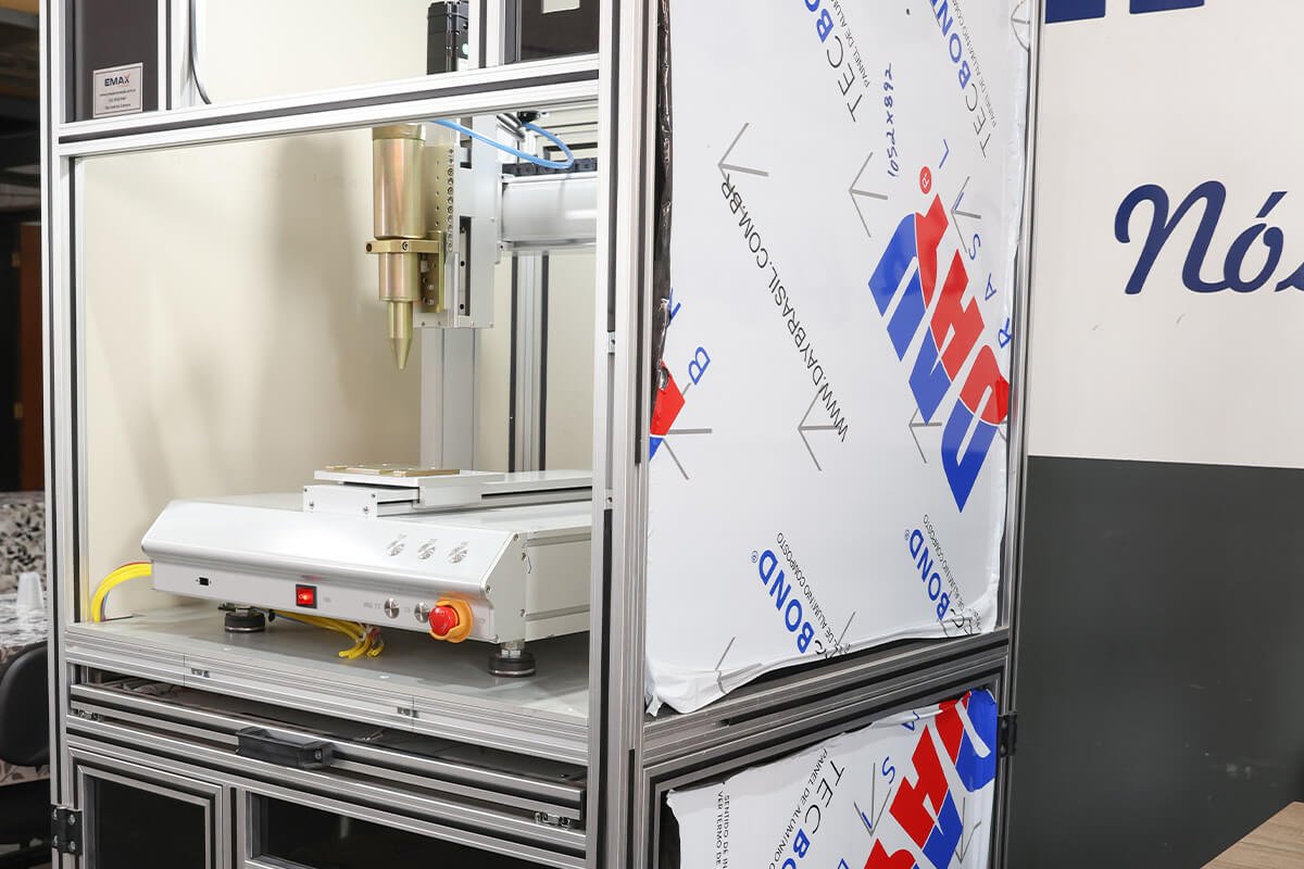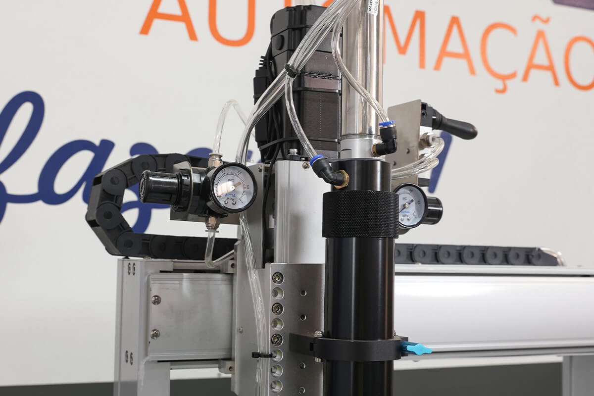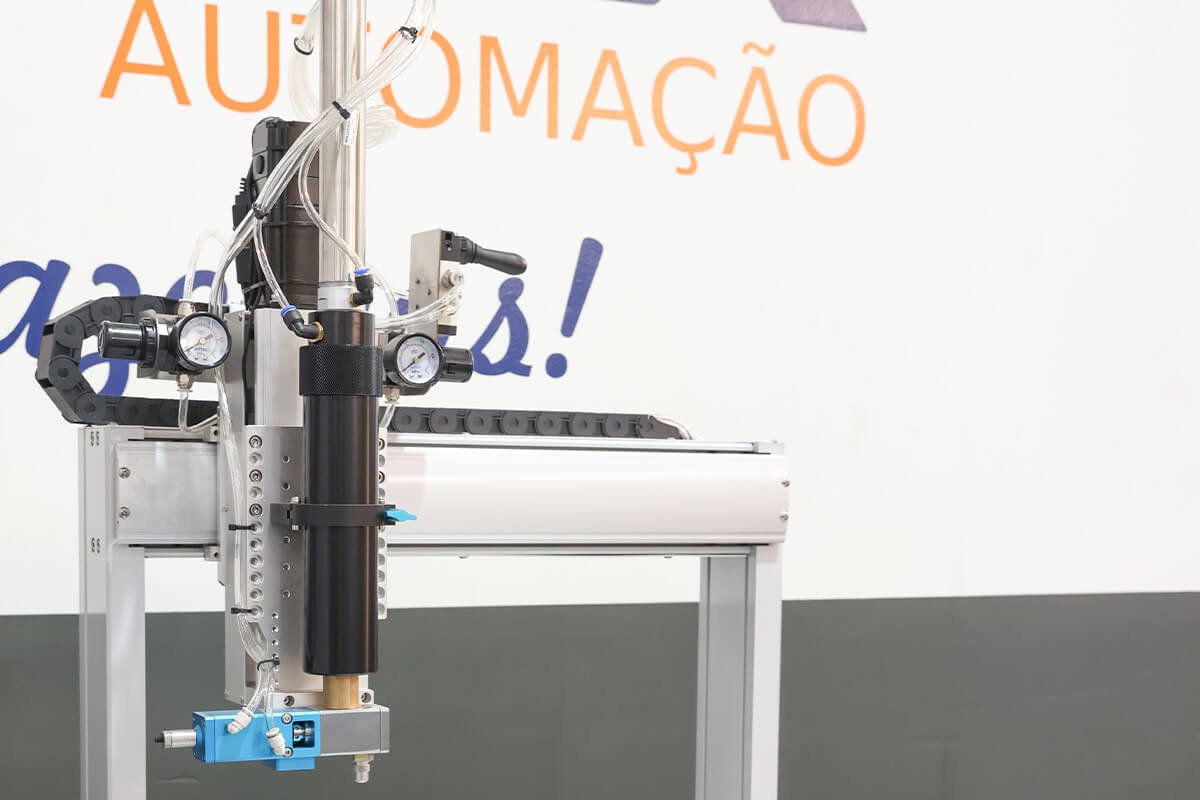A Emax Automação oferece o Robô Dosador, uma solução para automação da aplicação de cola, com ajuste de volume, espessura, velocidade e tempo de dispensação, além de uma variedade de ponteiras, seringas, válvulas e controles disponíveis para atender a diferentes necessidades.