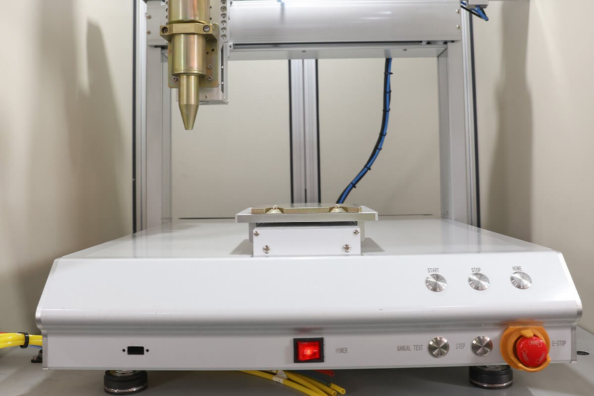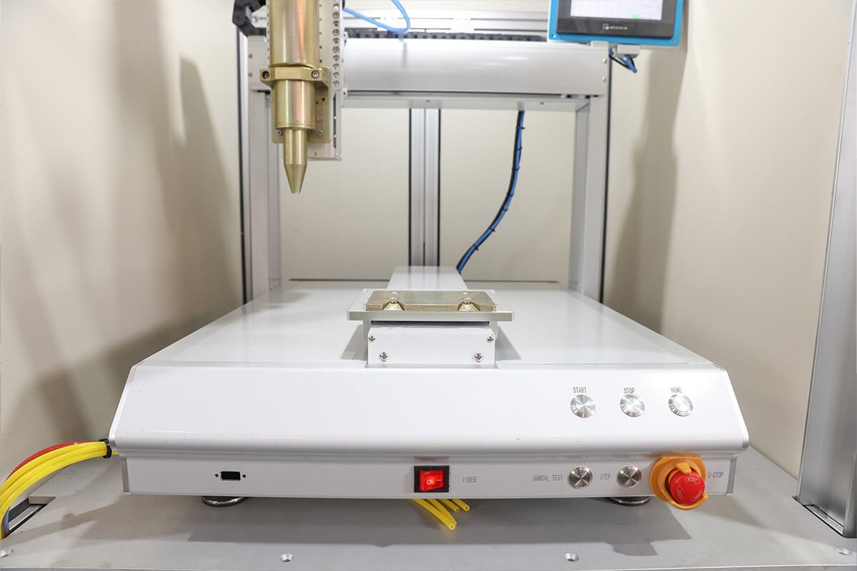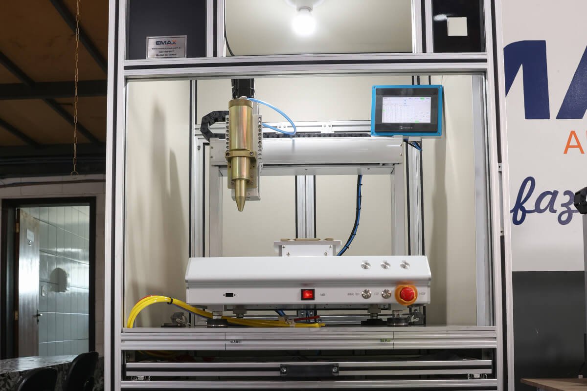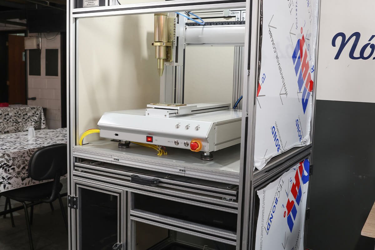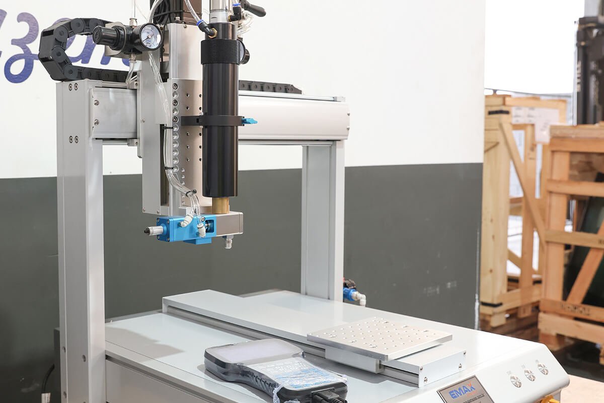 A Emax Automação oferece o Robô Dosador, uma solução para automação da aplicação de cola, com ajuste de volume, espessura, velocidade e tempo de dispensação, além de uma variedade de ponteiras, seringas, válvulas e controles disponíveis para atender a diferentes necessidades.